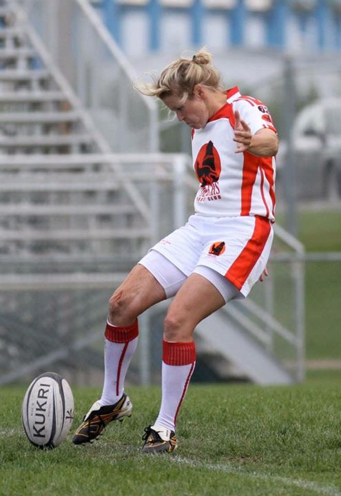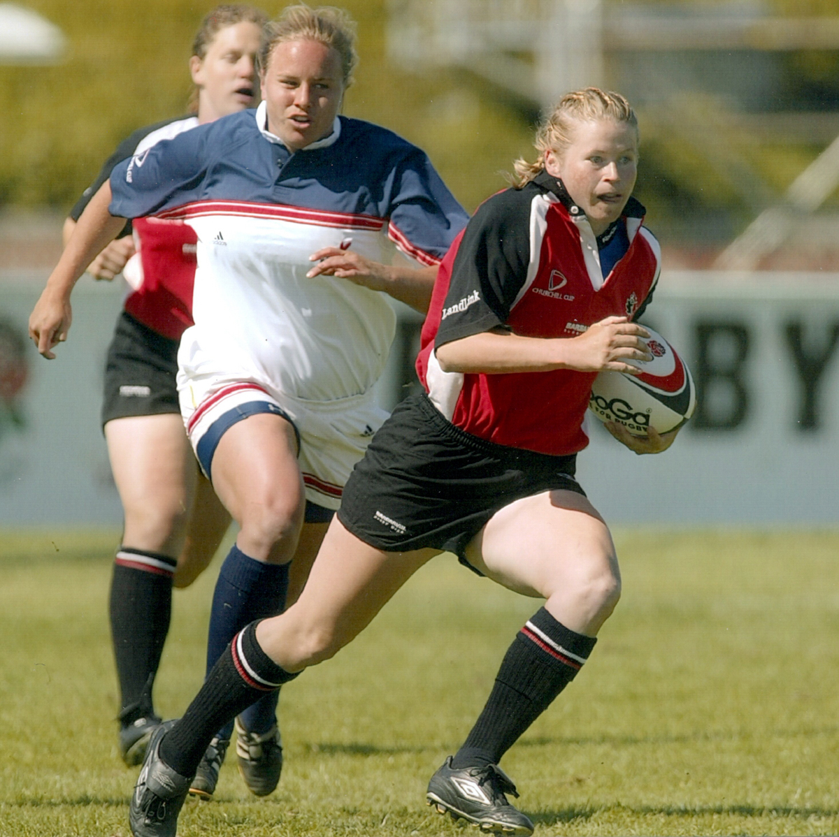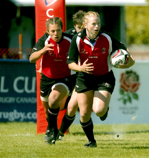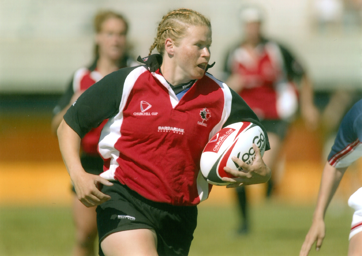She began to play rugby in 1991 at age 22, earning a spot on Saskatchewan’s provincial team that year while also being long-listed for the national team. She debuted on the Canadian national team in 1996 and scored 13 tries in her international career which lasted until 2006. She also spent 21 years on the provincial team. In 1997, she joined Canada’s first women’s rugby sevens team at the prestigious Hong Kong Sevens. She represented Canada 10 times in sevens rugby over 10 years.