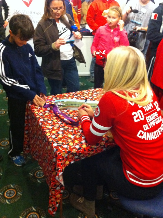 Kaylyn was happy to spend a few hours of her Saturday hanging out and making sure that ever jersey, ball, card and shoe that needed an autograph got one, and that every aspiring soccer star that passed through our doors got the opportunity to wear her medal in a photographic memory that will last a lifetime.